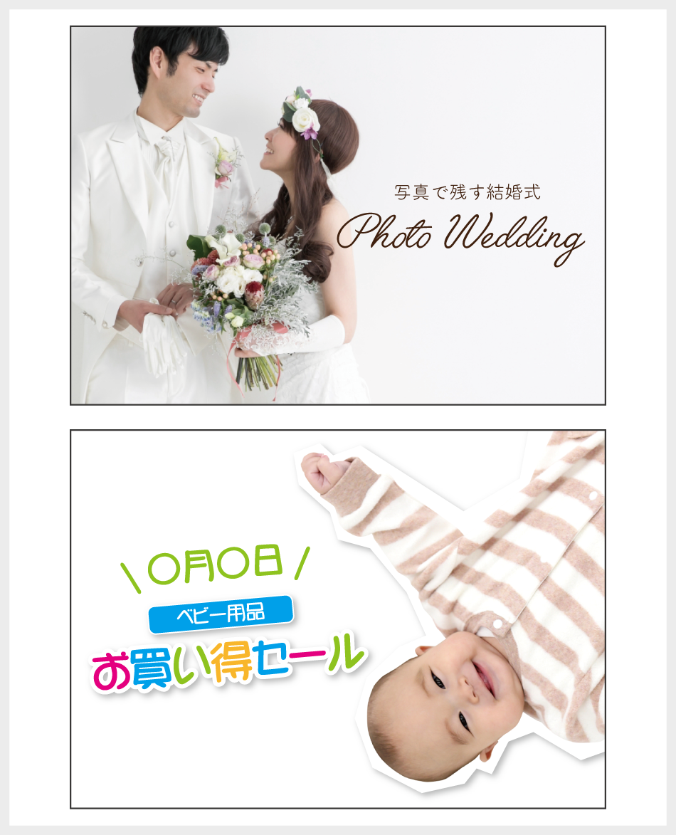 もちろん、子供向け、老人向け、主婦向け、ビジネスマン向けなど属性に合わせたビジュアルの選定もお忘れなく。